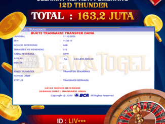 DEWATOGEL JACKPOT LIVE CASINO DI 12D THUNDER Rp 163.250.000,- LUNAS