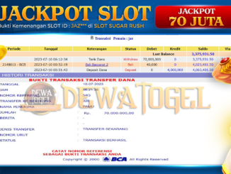 DEWATOGEL JACKPOT SLOT SWEET BONANZA RP 77.000.000,- LUNAS MEMBER DEWATOGEL MENERIMA PELUNASAN JACKPOT SLOT SWEET BONANZA RP 77.000.000,- LUNAS “DEWATOGEL Situs Togel Online, Casino Online, […]