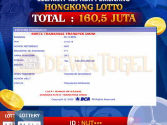 DEWATOGEL JACKPOT TOGEL DI HONGKONG LOTTO Rp 160.500.000,- LUNAS